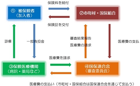 国保に加入する方は、自営業者、農業従事者、退職などで職場の健康保険をやめた方、パートやアルバイトなどで職場の健康保険に加入していない方などで、被保険者といいます。 - 国保保険者(都道府県・市町村・国保組合)